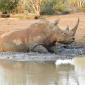 This Rhino didn't make a full-body dip into the mud & water. Instead, it choose to only get about half of it's body wet and muddy.